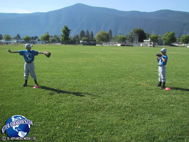 Before players start throwing, make sure they are facing the proper direction (ie. players should have their glove-hand side pointed towards the target - see picture).